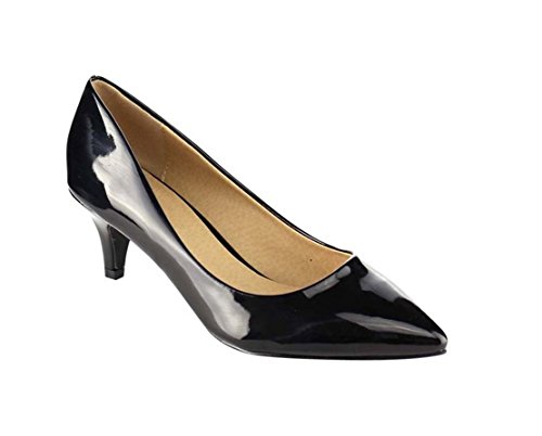Coshare Women’s Fashion Patent Embellished Front Low Heel Pumps