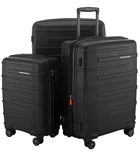 - Three-piece tough-side suitcase set: 1 cabin bags 37 liter (55 x 36 x 21 cm) + 1 suitcase eighty two liter (65 x forty six x 28 cm + 4 cm) + 1 suitcase 126 liter (75 x fifty three x 30 cm + 4 cm)